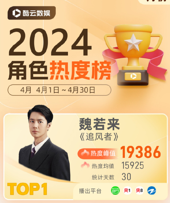 近日,酷云更新4月变装热度排行,可爱追剧的网友王人知说念,一部剧的热度够高的时分,剧中变装的热度也不会差,因为大部分不雅众王人是先冲着演员追剧,然后剧要凭借质料将不雅众留住。